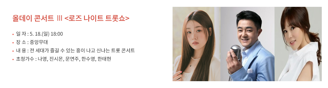 - 로즈 세레나데 쇼: 5.17(토) – 유하은, 알리, 정동하