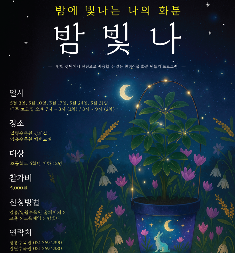 이번 주말, 수원 일월수목원에서 특별한 봄밤 추억 만들어보세요.